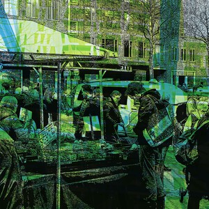 'Plantsoen bij achteringang Leiden centraal '- digitale collage print