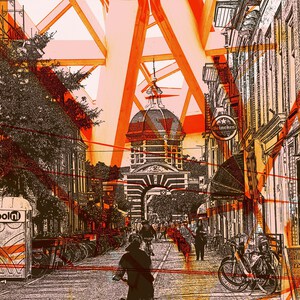 Recente collage art prints in kleur: digitale prentkunst van de moderne stad èn architectuur design in Nederland - prenten op dibond of in lijst